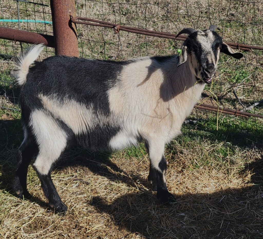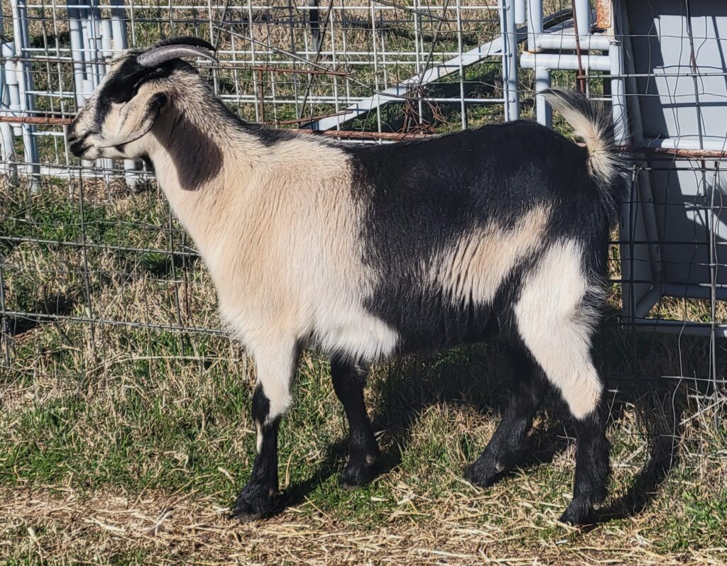 Double Down’s genetics is one to be proud of with CHEROKEE FIDDLER over TERMINATOR XXX DAUGHTER. BORN 3/12/2025 at a weight of 8lbs even. Nice rib spring, straight back and full hind quarter. Great doe for any herd. Consigned to the AKI sale in September. Hopefully will be bred to HAMMER’S KEEPER will know by sale time.